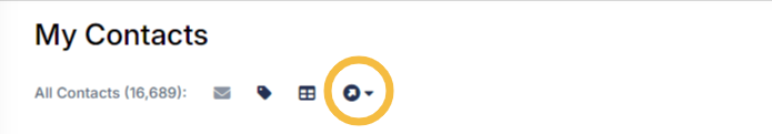 On the My Contacts page, at the top are a row of buttons for bulk actions, including a 'Push to Hubspot' button. By default, the actions apply to all contacts. However, you can use the filters and checkboxes to select a list or set of specific contacts first, before you click the button.