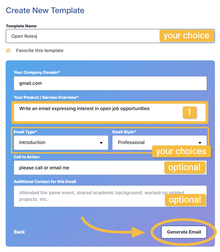 You can paste this prompt into the box [1] to generate an email template: